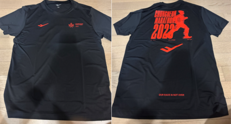 확실히 춘천마라톤 기념 티셔츠가 마라톤 중에